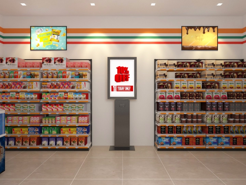 Large digital screens provide impactful advertising space, that can be sold or used by the retailer. Highlight products on promotion with moving graphics that grab attention.